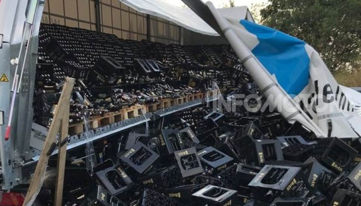 Quello che è certo è che i vigili del fuoco ed i servizi civili delle cittadine confinanti hanno impiegato più di sei ore a pulire tutto il vetro e l’alcool versati sulla strada. Lo strano spettacolo non ha mancato di impressionare gli abitanti, che avranno avuto modo di bere qualche goccio del prezioso nettare prima che tutto tornasse alla normalità.