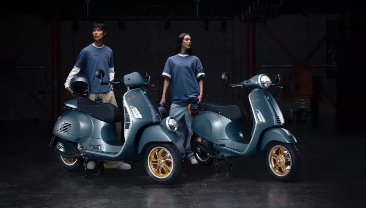 Questa nuova veste coinvolge la Vespa Primavera – proposta nelle cilindrate 50, 125 e 150 cm³ – e la più sportiva Vespa GTV 310, con il suo iconico faro basso e manubrio a tubo a vista, vero richiamo alle versioni da competizione. Tutti i modelli Officina 8 presentano elementi estetici esclusivi, in un mix raffinato di blu industriale e finiture color ottone, con profili e dettagli in metallo satinato e cerchi lavorati con finitura diamantata.
