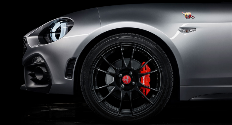 Oltre alle caratteristiche che hanno decretato il successo del 124 Spider, la vettura presenta numerosi contenuti esclusivi come i cerchi in lega da 17″ OZ Racing, che pesano circa 3 kg in meno rispetto allo standard e garantiscono una migliorata manovrabilità e un design nuovo e più sportivo. Inoltre, le calotte degli specchietti presentano l’esclusiva colorazione gun metal, in abbinamento allo spoiler anteriore. A richiesta è possibile dotare la vettura del cofano con trattamento nero opaco. Questa finitura è un chiaro richiamo alla storica Abarth 124 Rally che adottava questa soluzione per ridurre i riflessi del sole sul pilota. La nostra vettura in prova aveva anche lo spoiler posteriore in fibra di carbonio, come pure le calotte degli specchietti (in opzione possono essere anche rosse) e l’impianto frenante Brembo con pinze rosse. Davvero al top.