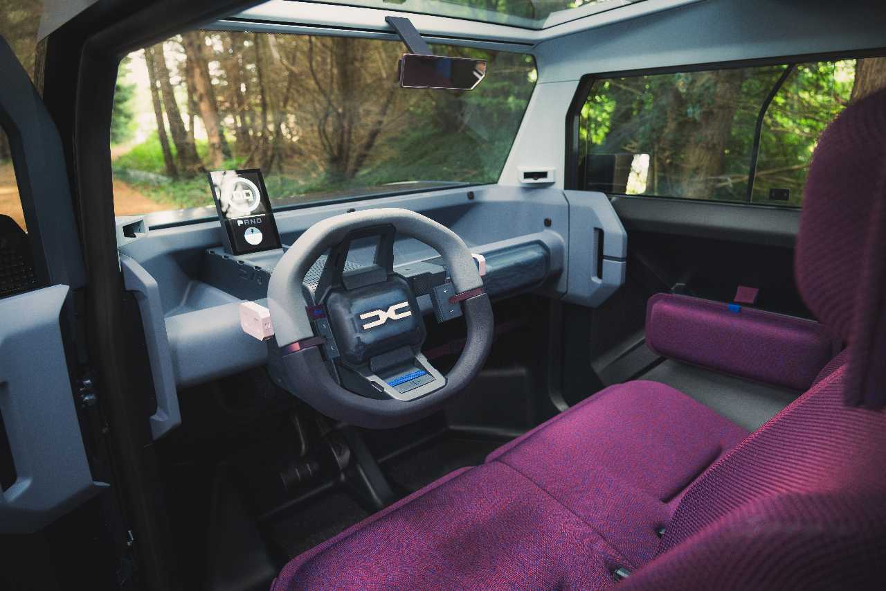 L’interno accoglie quattro adulti con un livello di comfort paragonabile a quello di modelli più grandi. La posizione di guida, derivata da Dacia Sandero, garantisce una visuale ampia e un controllo sicuro nel traffico urbano. L’accesso ai sedili posteriori è agevolato dall’ampia apertura delle porte e dal ribaltamento del sedile anteriore.
