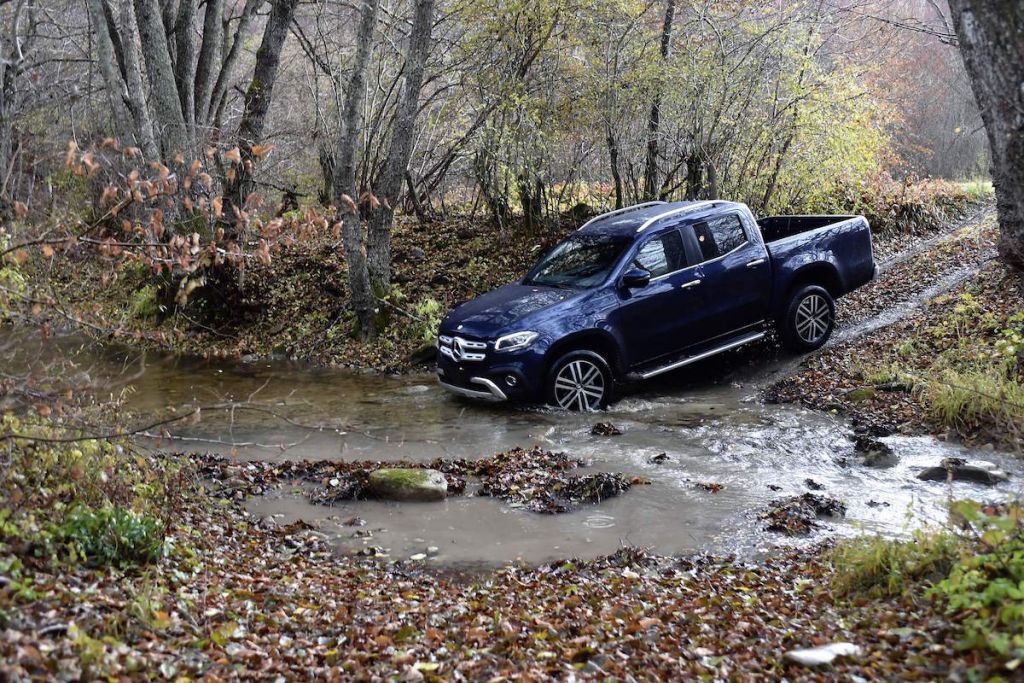 Il Classe X è dotato anche di insonorizzazione NoiseProof , che garantisce un comfort di marcia unico grazie anche all’ottimo climatizzatore automatico bizona: nonostante fossimo 4 passeggeri e con una giornata a dir poco uggiosa i vetri non si sono mai appannati. Meccanicamente il Classe X rispecchia in tutto e per tutto la tradizione Mercedes-Benz: trazione integrale inseribile con marce ridotte di serie e bloccaggio del differenziale posteriore, a cui si aggiunge la guida con un’inclinazione laterale fino ai 49,8° e una pendenza superabile del 100% (45°), un’altezza libera al suolo di 202mm (con possibilità di avere un assetto più alto di 20mm.), e un’altezza di guado di ben 600mm. La doppia protezione sottoscocca e antincastro fa di questo nuovo Classe X un pick-up con tutte le doti da fuoristrada.