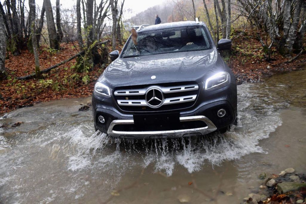 La tenuta su strada sul bagnato è veramente stupefacente anche considerando che stiamo guidando un pick-up (impressionante anche in fuoristrada). Abbiamo guidato su di una salita molto ripida e sconnessa con rivoli d’acqua in cui era facile scavare solchi di 10cm ma il Classe X l’ha affrontata in tutta sicurezza anche senza usare le ridotte. La sterzata è un po’ avara, ma bisogna sempre tener conto delle dimensioni, quindi prima di affrontare un passaggio off- road è bene prendere le misure altrimenti si incappa facilmente in una o due manovre. Far manovra in off-road con fango e scarsa aderenza non è mai simpatico.