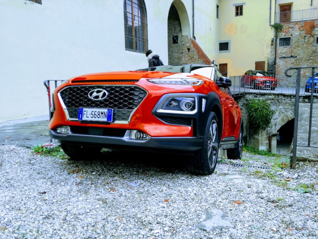 Doppio test dicevamo, in quanto il primo effettuato a Firenze città e sui colli toscani con la motorizzazione più performante, l’1.6 turbo benzina da 177 Cv con cambio automatico a doppia frizione DCT; il secondo fra le strade amiche di casa, in tranquillità e relax, senza fretta, con il propulsore più piccolo, l’1.0 – un 3 cilindri turbo benzina con cambio manuale a 6 marce – da 120 Cv. Un test drive davvero completo, probante, che ha messo in mostra tutto quello che c’era da scoprire di questa Kona, che si instaura proprio nel cuore del segmento B dei SUV, cioè quelli più trasversali, ovverosia adatti molto bene sia alla città sia alla campagna, alle strade extraurbane e alle autostrade. L’1.6 a doppia frizione è il non plus ultra in fatto di scorrevolezza di marcia e performance in ogni condizione, con un handling appropriato e un’adeguata tenuta di strada; l’1.0 è l’Urban Suv scattante e docile in ogni circostanza, che non disdegna allunghi e autostrada, grazie al cruise control e ai numerosi sistemi di sicurezza. Due versioni diverse nelle motorizzazioni, ma non nei contenuti.