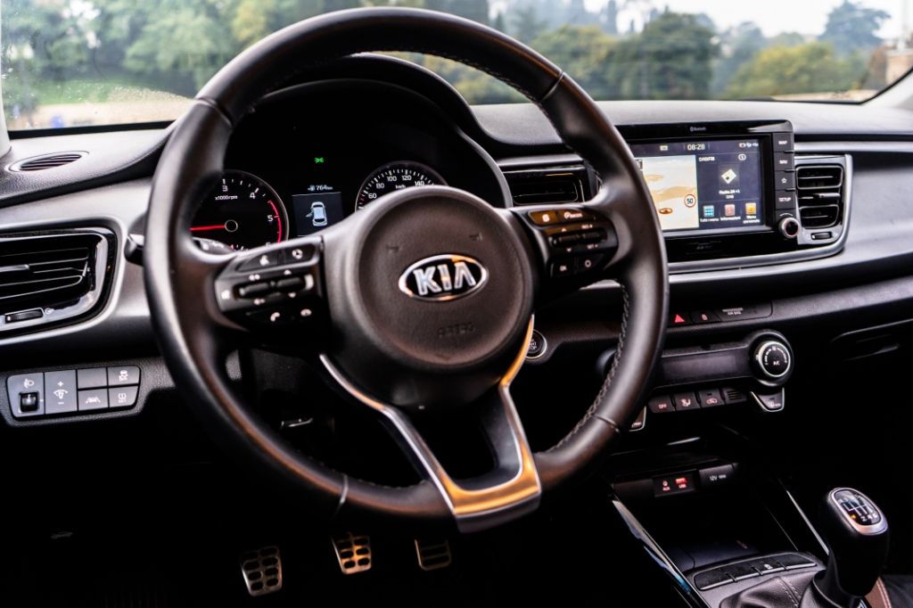 Il volante è abbastanza morbido da lasciarsi tutto alle spalle nei vicoli cittadini ed il raggio di sterzata si è rivelato nella media per le dimensioni della vettura. Bene anche nei parcheggi, dove oltre ad una visibilità più che accettabile ci vengono incontro la telecamera posteriore ed i sensori di prossimità, in buona compagnia con altre chicche tecnologiche. Kia Rio è infatti equipaggiata da un navigatore preciso e semplice che integra i servizi Android Auto ed Apple Car Play oltre ai più canonici Bluetooth, DAB, AUX ed USB. A questo proposito troviamo una presa USB e due accendisigari. Gli aiuti alla guida poi includono la frenata automatica d’emergenza, il mantenimento della corsia e i classici sistemi elettronici come ABS e TCS. Quest’ultimo, se provocato, interviene un po’bruscamente tagliando la potenza, ma fa il suo dovere di angelo custode.