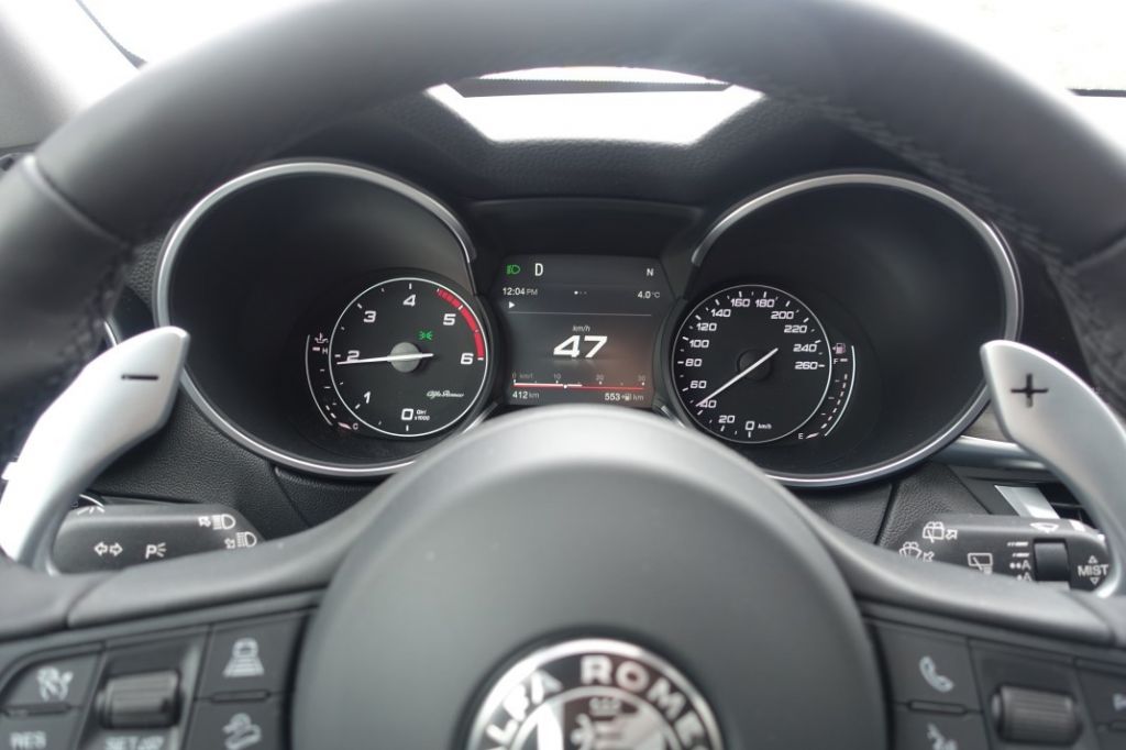 La stessa ispirazione sportiva degli esterni ha guidato la mano dei designer Alfa Romeo: nasce così un abitacolo dalle linee pulite ed essenziali, che offre il massimo livello in termini di qualità, sicurezza, contenuti e comfort. Con in più un elemento specifico profondamente Alfa Romeo: la centralità del guidatore. Lo dimostra il raggruppamento di tutti i comandi sul volante che è stato disegnato piccolo e diretto per adattarsi a tutti gli stili di guida. Inoltre, il quadro strumenti a colori da 3,5” o 7”, a seconda degli allestimenti, offre al guidatore tutte le informazioni essenziali mentre l’interfaccia uomo/macchina si compone di due comandi rotativi che regolano, in modo semplice e immediato, il selettore Alfa DNA e il sistema Alfa Connect.