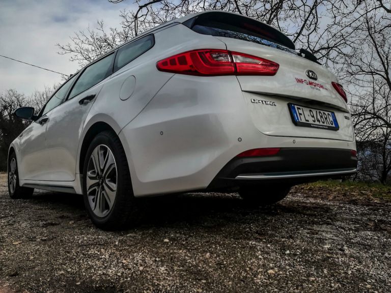 Il motore termico è un 2.000 benzina da 205 CV (67 dei quali sono elettrici) e una coppia massima di 375 Nm. Le batterie che equipaggiano la Kia Optima Station Wagon plug-in sonocapienti e garantiscono un’autonomia reale di 50-60 chilometri di percorrenza in pura modalità elettrica. Caricate da una presa domestica, le batterie passano da 0 a 100% di ricarica in circa 6 ore, tempo che scende a 3 ore ove la carica è possibile solo in monofase a 3.7 kW. Le prestazioni dei motori sono più che buone, l’elettrico entra in funzione nei momenti giusti e l’unica piccolissima pecca è il fatto che non possiamo conservare la carica elettrica per momenti che riteniamo più consoni al suo utilizzo. Lo scatto da 0 a 100 km/h è completato in 9.7 secondi e la velocità massima è di 192 chilometri orari. Nei tratti urbani con un litro di carburante si percorrono tra i 17 e i 18 chilometri, avendo l’accortezza di non spingere troppo.